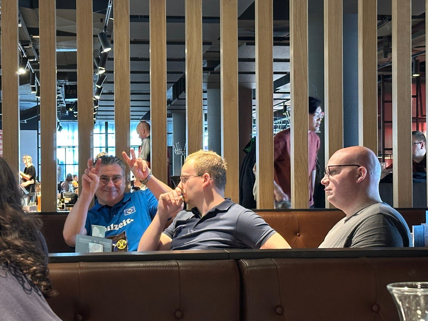 Nach einem ausgiebigen Frühstück im Schweinske stand die Besichtigung der "Elphi",mit unseren Dortmunder Freunden, an. Bei schönstem Fußballwetter hatten wir einen herrlichen Blick über Hamburg.Bevor es langsam Richtung Stadion ging, wurde noch ein gemeinsames Mittagessen, und das ein oder andere Bier, zu sich genommen. Beim Spiel im Volksparkstadion konnten wir miterleben, dass wir wieder einer der besten Mannschaften Europas zu Gast hatten.
