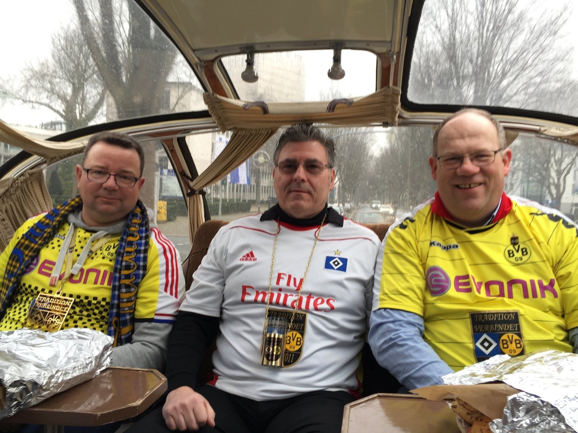 In Dortmund angekommen, wartete schon ein Oltimer Bus vor dem Hotel auf uns. Wer von den Einheimischen dachte "Den kenn ich doch", sollte in seiner Wahrnehmung bestätigt werden. Der Bus aus dem Jahre 1957 fuhr bereits in den WDR-Sendungen "Von und zu lecker" und "Land & lecker". In diesem roch es dann auch ganz lecker nach Salzkuchen mit Zwiebeln und Kaffee.